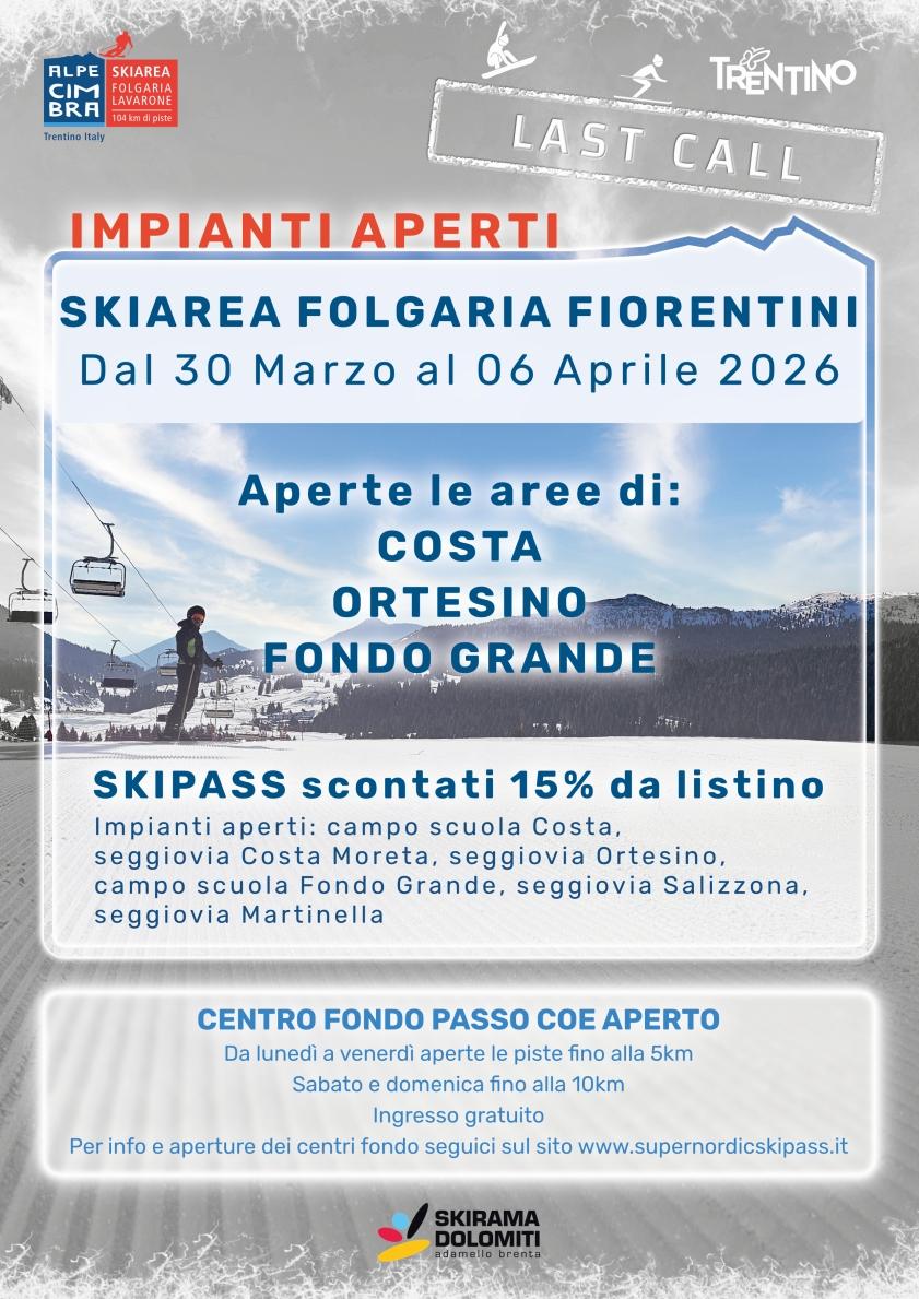 Impianti aperti dal 30/03 al 6/04